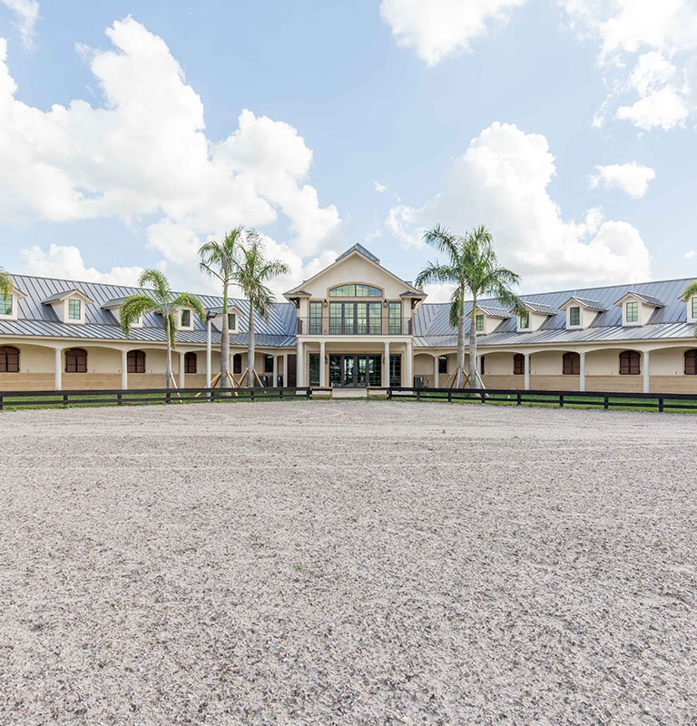 This spectacular thirty-two stall custom barn was built with amazing amenities including two stallion stalls with an additional eight wash stalls. The private grooms’ quarters has four bedrooms and four baths so that they can have constant surveillance and care of the horses. There is also an elegant private owner’s lounge and meeting area.